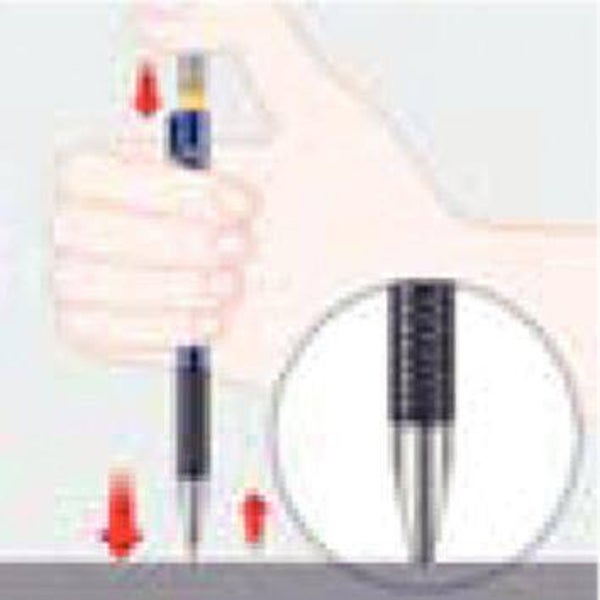 Spécial écriture et dessin, code couleur ISO, manchon caoutchouc antiglisse, pointe, clip et poussoir métal. Canon droit pour les tracés à la règle et rentrant pour la protection des poches, amortisseur de mine, recharge directe de 12 mines avec l''étui emboîtable MARSMICRO, complet avec gomme et mines HB