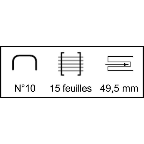 Agrafe jusqu''à 15 feuilles. Fonctionne avec agrafes n°10. Chargement classique par l''arrière. Profondeur d''insertion de 49,5mm. Garantie 10 ans